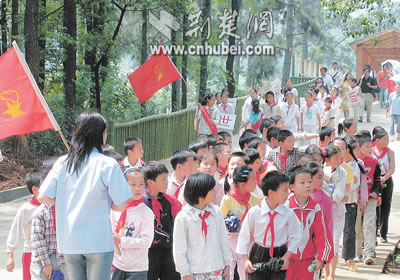 昨日,武漢市洪山區(qū)九峰鄉(xiāng)1700多名小學(xué)生興高采烈地來(lái)到武漢九峰鄉(xiāng)森林動(dòng)物園,參加別開生面的慶“六一”活動(dòng)。孩子們?cè)凇叭恕?dòng)物·未來(lái)”百米長(zhǎng)卷上簽名,以表示愛綠色家園,創(chuàng)美好明天的決心。這是孩子們游園的情景。