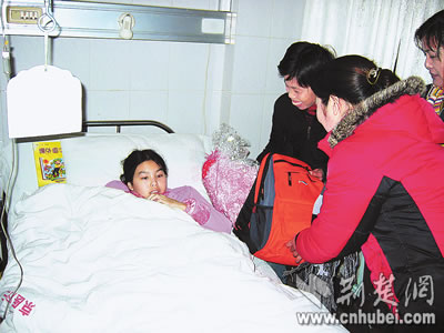 荊楚網(wǎng)消息(楚天都市報(bào))(記者藍(lán)海)昨日,湖北日?qǐng)?bào)報(bào)業(yè)集團(tuán)派人前往京山縣人民醫(yī)院看望小楊青,帶去了集團(tuán)職工的慰問(wèn)和熱心讀者的祝福,并將募集到的首批4.2萬(wàn)元捐款交到了她的父親手中。