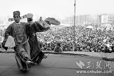 22日下午,潛江市澤口開發(fā)區(qū)彭魯村村民正在欣賞潛江花鼓戲。春節(jié)以來,該市地方歌舞、龍燈、舞獅、采蓮船等群眾喜聞樂見的文藝活動遍布城鄉(xiāng),群眾的節(jié)日文化生活異彩紛呈。荊楚網(wǎng)湖北日報記者鄭元昌 通訊員吳燕軍攝