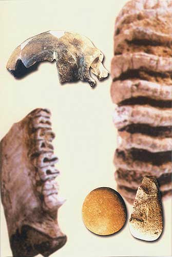 石砍砸器:工具(右下右,長15.8厘米)[相關鏈接]:1、北京周口店遺址與北京人和山頂洞人(圖)2、云南元謀人遺址(圖)3、陜西藍田人遺址(圖)4、金牛山遺址及金牛山人(圖)5、馬壩人遺址(圖)6、泥河灣舊石器時代遺址群(圖)7、丁村遺址(圖)8、仙人洞與吊桶環(huán)遺址(圖)9、玉蟾巖遺址(圖)10、裴李崗遺址(圖)11、賈湖遺址(圖)12、興隆洼遺址(圖)13、大地灣遺址(圖)14、仰韶遺址(圖)15、半坡遺址(圖)16、姜寨遺址(圖)17、后岡遺址(圖)18、廟底溝遺址(圖)19、大汶口遺址(圖)20、河姆渡遺址(圖)