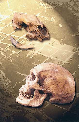 劍齒虎頭骨化石:(上)