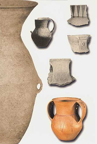 陶甕:盛器(左上,高11.8厘米)