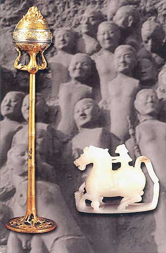 鎏金銀銅竹節(jié)熏爐:焚香用具(左,高58厘米)