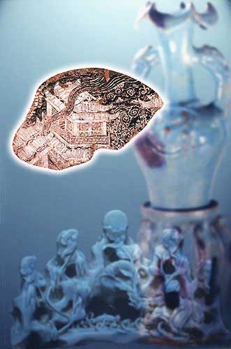 影青瓷筆山:文具(左下,高11厘米)[相關鏈接]:20世紀中國百項考古大發(fā)現(xiàn)(1-20)20世紀中國百項考古大發(fā)現(xiàn)(21-40)20世紀中國百項考古大發(fā)現(xiàn)(41-60)20世紀中國百項考古大發(fā)現(xiàn)(61-70)20世紀中國百項考古大發(fā)現(xiàn)(71-80)81、云崗石窟(圖)82、龍門石窟(圖)83、敦煌莫高窟(圖)84、龍興寺佛教造像窖藏(圖)85、隋大興唐長安城遺址(圖)86、隋唐洛陽城遺址(圖)87、隋代虞弘墓(圖)88、唐代帝陵陪葬墓(圖)89、法門寺塔基與地宮(圖)90、阿斯塔那墓地(圖)91、渤海上京龍泉府遺址(圖) 92、南唐二陵(圖)93、白沙宋墓(圖)94、遼陳國公主墓(圖)95、龍泉青瓷窯址(圖)96、耀州窯遺址(圖) 97、西夏王陵(圖)98、古格故城遺址(圖)99、元大都遺址(圖)100、明定陵(圖)