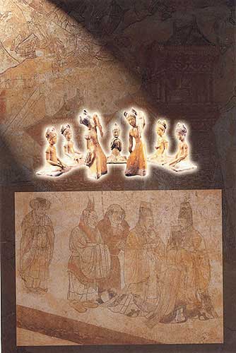 "客使圖"壁畫:(下)[相關(guān)鏈接]:20世紀(jì)中國百項(xiàng)考古大發(fā)現(xiàn)(1-20)20世紀(jì)中國百項(xiàng)考古大發(fā)現(xiàn)(21-40)20世紀(jì)中國百項(xiàng)考古大發(fā)現(xiàn)(41-60)20世紀(jì)中國百項(xiàng)考古大發(fā)現(xiàn)(61-70)20世紀(jì)中國百項(xiàng)考古大發(fā)現(xiàn)(71-80)81、云崗石窟(圖)82、龍門石窟(圖)83、敦煌莫高窟(圖)84、龍興寺佛教造像窖藏(圖)85、隋大興唐長安城遺址(圖)86、隋唐洛陽城遺址(圖)87、隋代虞弘墓(圖)88、唐代帝陵陪葬墓(圖)89、法門寺塔基與地宮(圖)90、阿斯塔那墓地(圖)91、渤海上京龍泉府遺址(圖) 92、南唐二陵(圖)93、白沙宋墓(圖)94、遼陳國公主墓(圖)95、龍泉青瓷窯址(圖)96、耀州窯遺址(圖) 97、西夏王陵(圖)98、古格故城遺址(圖)99、元大都遺址(圖)100、明定陵(圖)
