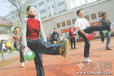 荊楚網(楚天都市報)(記者潘勤實習生黃進 蕭顥)昨日,江漢區(qū)民意街的晨練居民一大早就走進了武漢市七十五中的校園,大家在操場上打拳、跳操、踢球,玩得不亦樂乎。