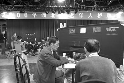 荊楚網(wǎng)消息(湖北日報(bào))(通訊員洪海)由省橋牌協(xié)會(huì)主辦的2006年全省老年人橋牌賽昨日起在漢舉行。共有來自全省各地的22支老年人橋牌隊(duì)參加了角逐。比賽將進(jìn)行四天時(shí)間,每天進(jìn)行5輪比賽,每輪為10副牌。參賽者中年齡最大的達(dá)84歲。