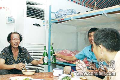 荊楚網(wǎng)(楚天都市報(bào))昨日下午,新洲來漢的農(nóng)民工程師傅一收工,就直接鉆進(jìn)了集體宿舍,圖個(gè)涼快———宿舍里剛剛安裝了一臺(tái)5匹的大空調(diào)。程師傅是一位木工,他所在的工地是位于漢口建一路的麗水康城。在那里,和他一起的工友有600多人,全都住在裝有空調(diào)的宿舍里。