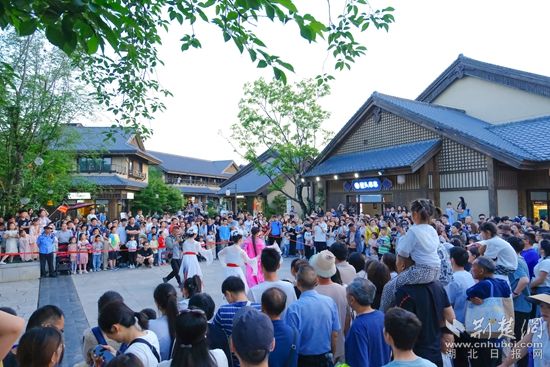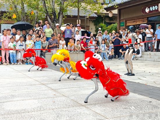 白天,智能機器人登臺唱起經(jīng)典黃梅戲,聲聲入耳;靈活的機器狗躍動翻騰,引得觀眾連連喝彩。機器人巡游隊伍更是“身懷絕技”,握手、跳舞等表演樣樣在行,游客爭相互動合影。