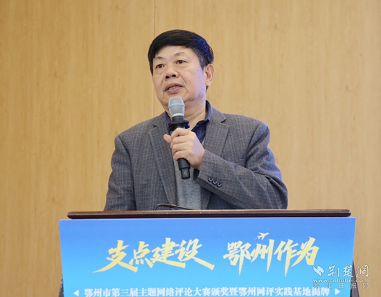 頒獎(jiǎng)活動(dòng)現(xiàn)場,湖北省社會(huì)科學(xué)院原副院長、省政府咨詢委員、長江經(jīng)濟(jì)帶智庫聯(lián)盟秘書長秦尊文受邀出席,并從網(wǎng)評(píng)的角度,圍繞“弘揚(yáng)花湖精神 助力支點(diǎn)建設(shè)”主題,發(fā)表了主旨演講。他結(jié)合最新公布的《中共中央關(guān)于制定國民經(jīng)濟(jì)和社會(huì)發(fā)展第十五個(gè)五年規(guī)劃的建議》,高屋建瓴分析了鄂州當(dāng)前的經(jīng)濟(jì)形勢,提出了切實(shí)可行的建議。湖北省委直屬機(jī)關(guān)工委干部馮歡以中央網(wǎng)信辦網(wǎng)絡(luò)評(píng)論“創(chuàng)四優(yōu)”競賽獲獎(jiǎng)作者身份,分享了自己多年網(wǎng)評(píng)文章寫作的心得體會(huì),風(fēng)趣幽默、干貨滿滿。