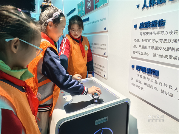 互動體驗環(huán)節(jié),孩子們在志愿者的帶領(lǐng)下有序參觀家庭電路模型、電力沙盤。大家輪番參與觸電、高空墜落等模擬體驗,挑戰(zhàn)心肺復(fù)蘇、滅火器滅火等應(yīng)急實操,在趣味互動中深化對安全知識的理解。