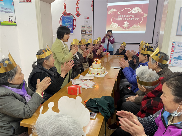 荊楚網(wǎng)(湖北日?qǐng)?bào)網(wǎng))訊(通訊員 曼晶晶)為弘揚(yáng)尊老、愛(ài)老、敬老、助老的傳統(tǒng)美德,提升社區(qū)老年人的歸屬感與幸福感,3月25日,東湖村社區(qū)聯(lián)合東湖康養(yǎng)旗下東湖村社區(qū)老年人服務(wù)中心、社區(qū)志愿者服務(wù)隊(duì),共同舉辦“情暖東湖·耆樂(lè)生辰”第一季度長(zhǎng)者集體生日宴活動(dòng),吸引了20余位60周歲以上的當(dāng)月生日老人參與。