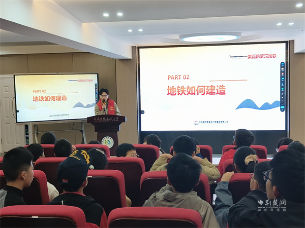 城地院志愿者華銳哲用趣味問(wèn)答解答“地鐵是如何修建的”。他將盾構(gòu)機(jī)比作“鋼鐵蚯蚓”,講解刀盤啃巖、管片筑墻、高精度導(dǎo)航避迷路的工作原理,針對(duì)孩子們提出的“碰到大石頭怎么辦”等疑問(wèn),生動(dòng)介紹了孤石爆破、溶洞灌漿等地下施工技巧。同時(shí),他以徐東路小學(xué)旁武漢地鐵5號(hào)線為例,講述著特色站點(diǎn)的匠心獨(dú)運(yùn),以及自動(dòng)駕駛列車穿梭于城市脈搏中的智能與從容。
