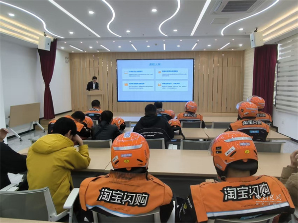 社工到驛站為騎手介紹社保知識(shí)。 通訊員供圖