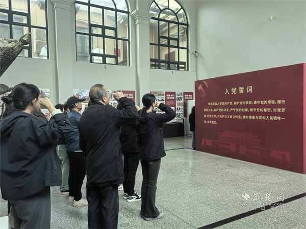 在湖北軍民抗戰(zhàn)博物館,全體黨員面向黨旗莊嚴宣誓,重溫入黨誓詞,堅定理想信念、強化責任擔當。大家認真參觀抗戰(zhàn)藏品、歷史照片和文獻資料,通過一件件實物、一段段史實,接受了深刻的愛國主義教育和革命傳統(tǒng)教育。