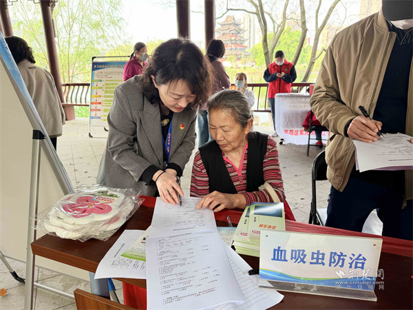 現(xiàn)場(chǎng)宣傳普及血吸蟲(chóng)防治知識(shí)。 通訊員供圖