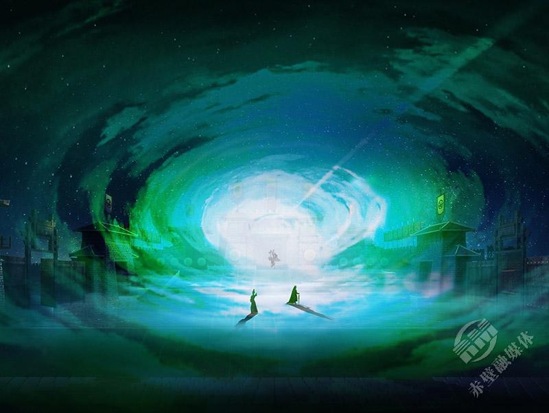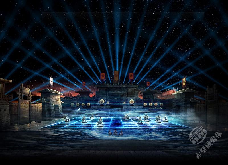 2000多年前,諸葛亮借的東風(fēng),是摧枯拉朽、克敵制勝的戰(zhàn)火雄風(fēng);2000多年后,三國赤壁古戰(zhàn)場借的東風(fēng),則是凝心聚氣、砥礪奮進的時代之風(fēng)。演出將赤壁之戰(zhàn)這盤歷史大棋置于天地之間,以三國群雄為弈者,以演員和觀眾為棋子,利用光影特效與舞美裝置的變換,將戰(zhàn)役的多個關(guān)鍵情節(jié)進行藝術(shù)化提煉與重構(gòu),運用聲、光、電等現(xiàn)代舞美技術(shù),將歷史與現(xiàn)實、虛擬與真實融為一體,構(gòu)建起一個戰(zhàn)火紛飛、羽箭穿空的三國世界,讓赤壁之戰(zhàn)從史書中的符號躍升為可觸摸、可參與的精神場域。
